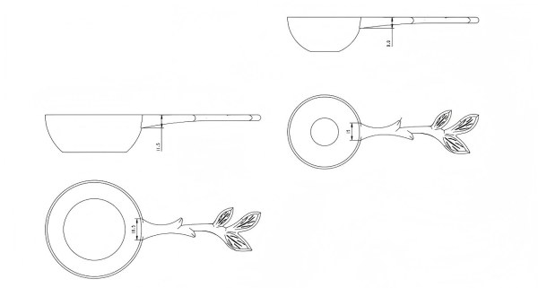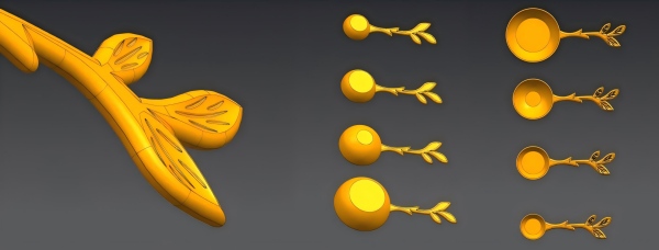 पहिले, पहिलेको अनुभवको आधारमा उत्पादनको आकार र सम्भावित उपयोगको मूल्याङ्कन समावेश गरिएको थियो। जस्ता मिश्र धातुलाई प्राथमिक सामग्रीको रूपमा प्रयोग गर्दै, हामीले सामग्रीको घनत्व र सतहका विशेषताहरू गणना गर्यौं, एर्गोनोमिक्स समावेश गर्यौं र चार नाप्ने चम्चा वा बरफको चम्चाका लागि समग्र आयामहरू डिजाइन गर्यौं। त्यसपछि, हामीले प्रत्येक विवरणमा आधारित र साना-साना विवरणहरू परिमार्जन गर्यौं। यी आयामहरूमा।